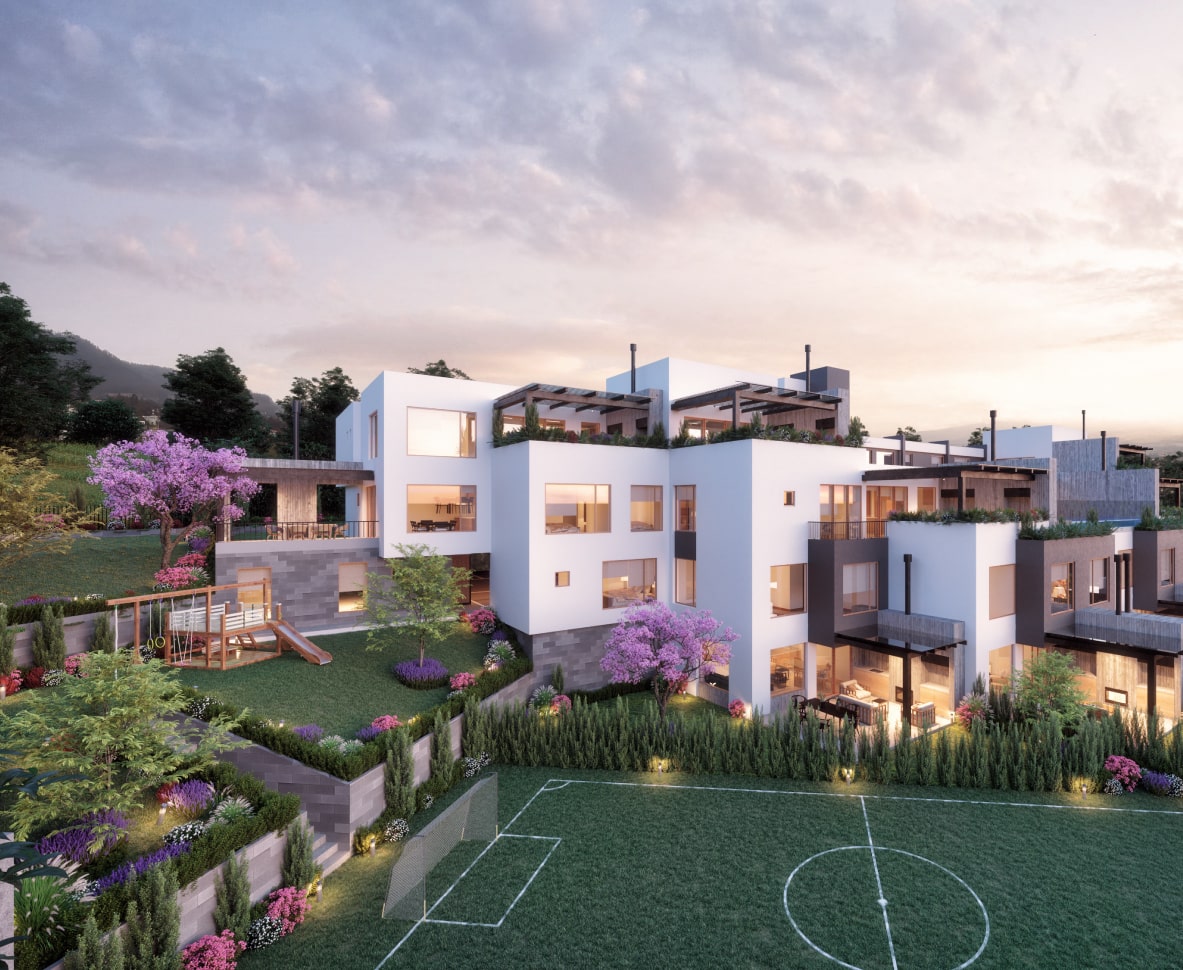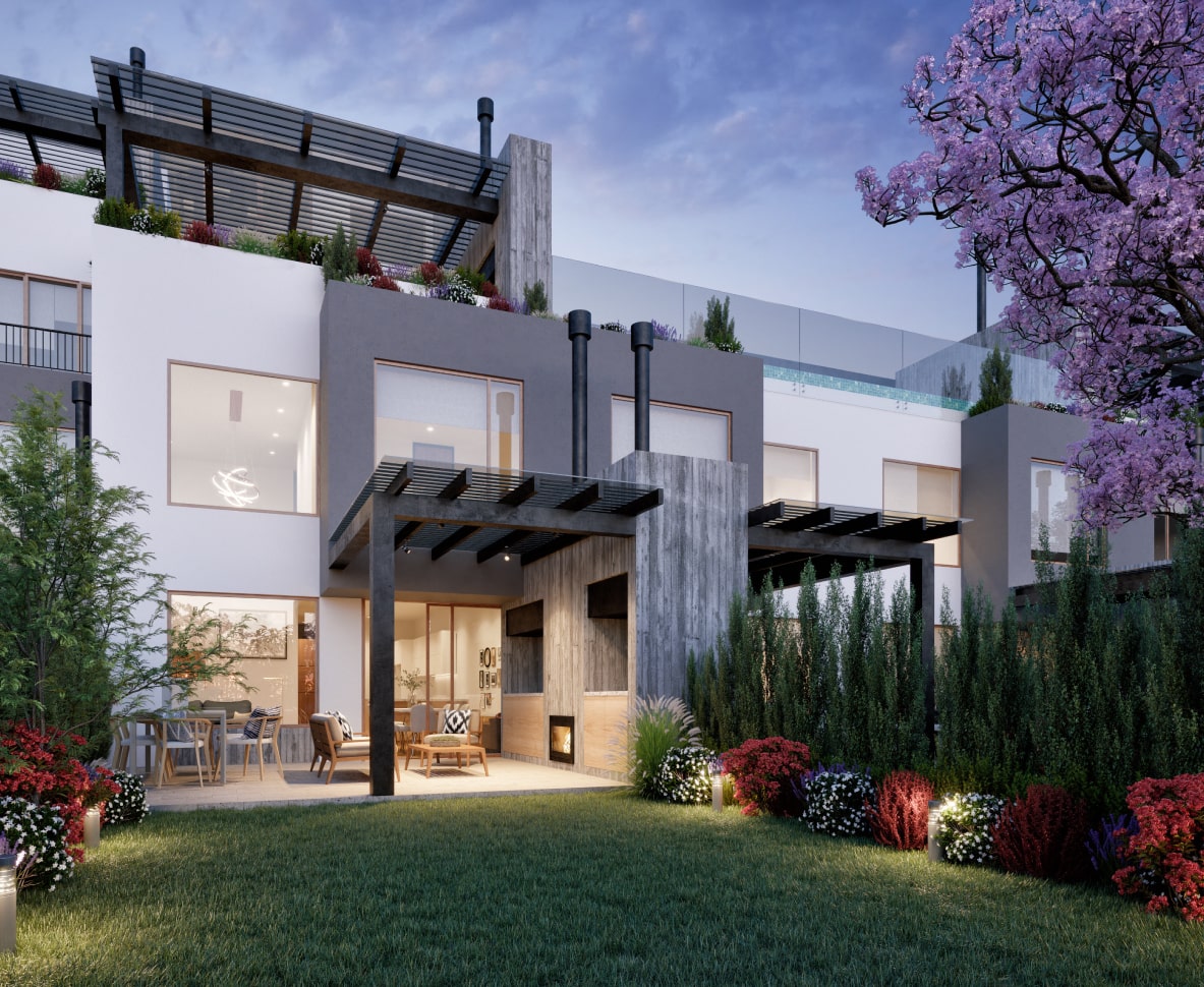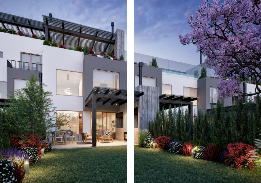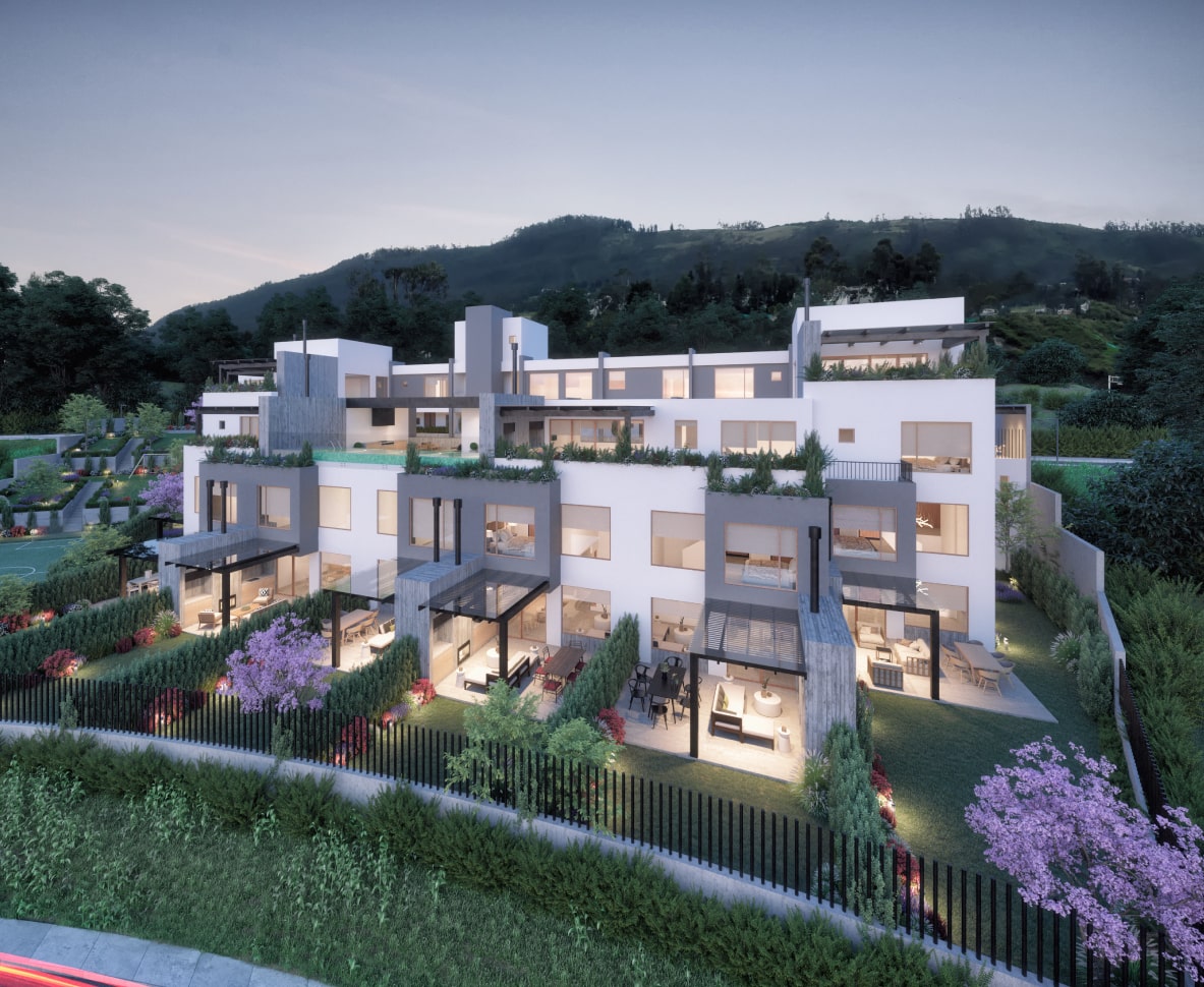 Amplios espacios con jardín, terraza o balcón, pérgolas, paisajismo interno, aclimatados con chimeneas, 1 & 2 parqueaderos y bodega.
